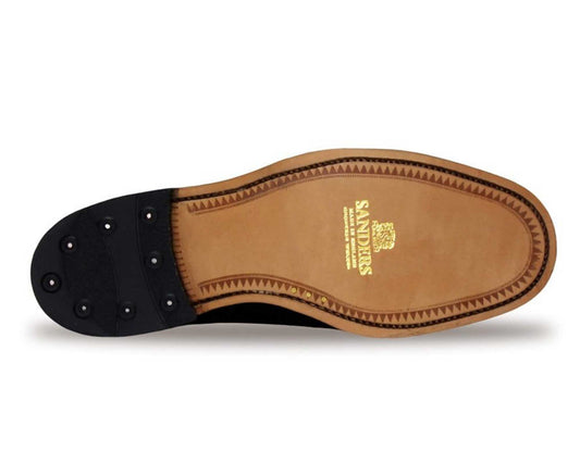 SALISBURY Mens Black Waxy Brogue with Rubber Sole by Sanders