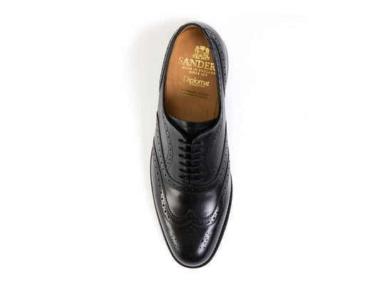Braemar Heavy Brogue Shoe in Black Grain Leather by Sanders