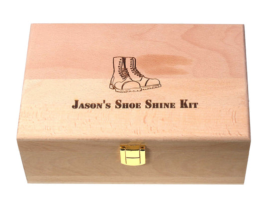 Personalised premium valet shoe cleaning kit in beech wood box Beeswax Polish